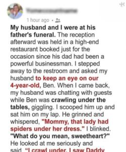 When I found him moments later, his expression was strangely serious. He tugged on my dress and whispered, “Mommy, I saw Daddy touch another lady’s leg.”