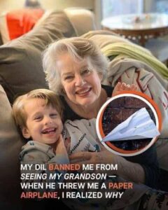 As I walked down the path, I suddenly heard Timmy’s small voice from the upstairs window. “Grandma, catch this!” he called. A folded paper plane fluttered down toward me. I unfolded it with trembling hands, expecting a drawing or a sweet note. Instead, my breath caught in my throat. In shaky, childlike handwriting were the words: “Grandma, please help me. I’m not safe. Don’t tell mom and dad.”