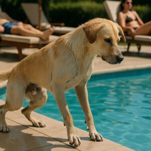 The dog suddenly jumped into the pool: the guests started to complain until the dog came out of the water — because he was holding something scary in his mouth