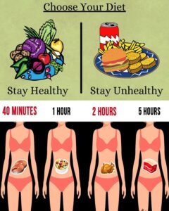 Notice how lighter foods move quickly, while protein and fat take much longer. That’s why you feel hungry faster after eating fruit but can stay full all afternoon after a high-protein meal.