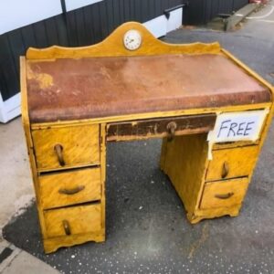 The dressing table was literally thrown away. Scratched, painted over, and labeled “Free,” it sat ignored as shoppers walked past, assuming it was beyond saving. Then Ross…