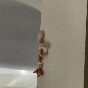 was still half asleep when I entered the kitchen and something strange caught my eye. A small pale pink spot appeared right between the cabinet and the…