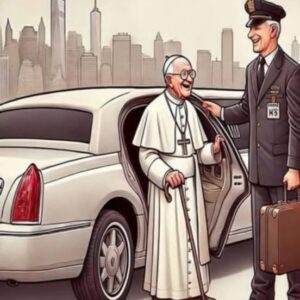 An elderly Pope landed in New York City, not to a grand procession but to a waiting limousine.   As he approached, a mischievous glint lit his…